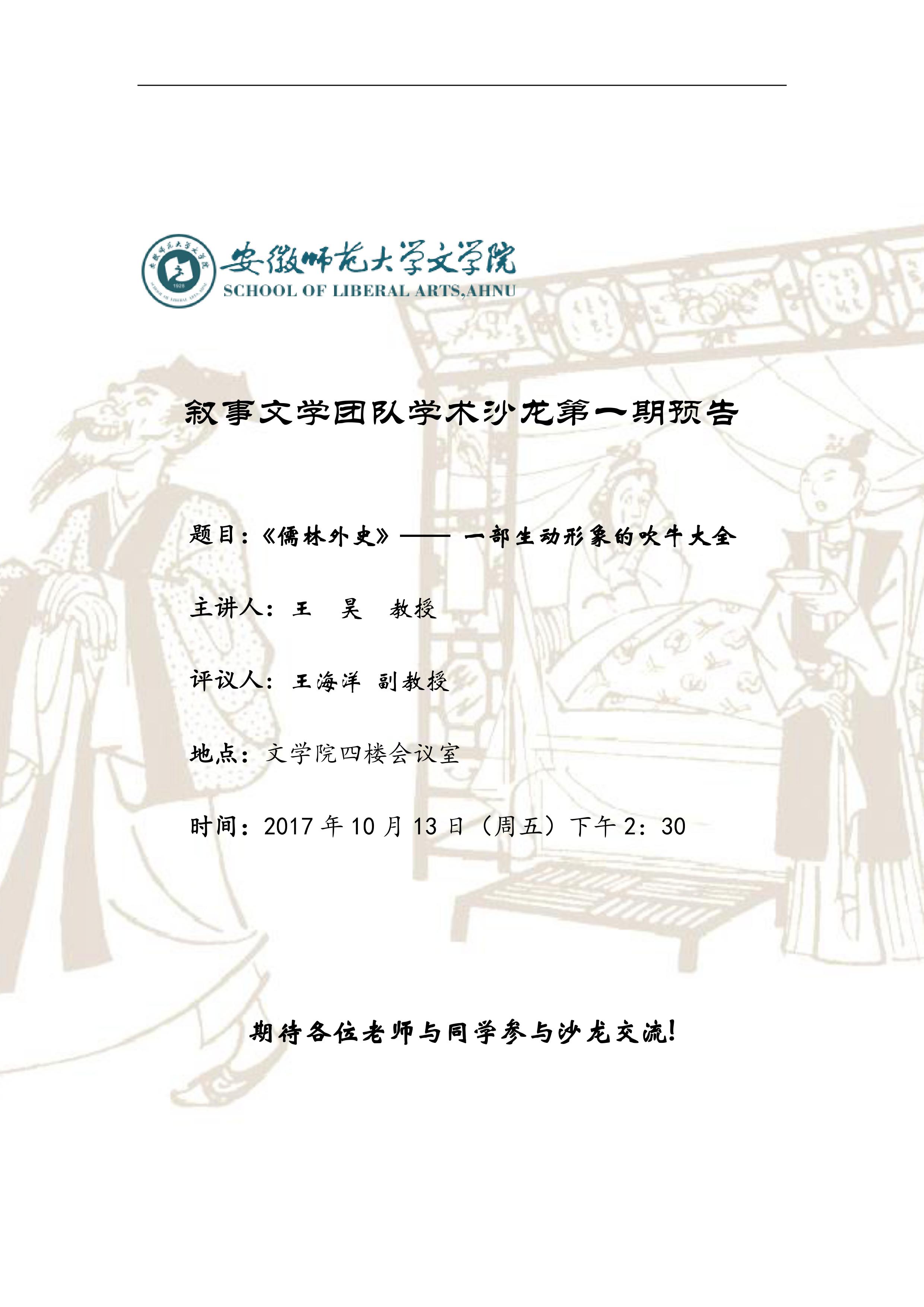 叙事文学团队学术沙龙预告