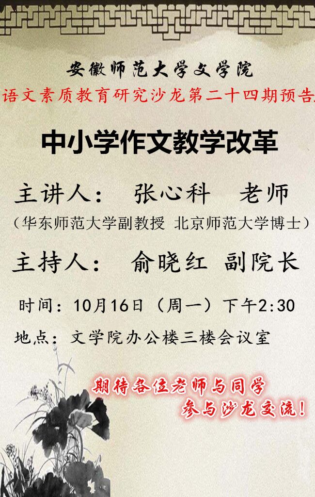 语文素质教育研究沙龙预告