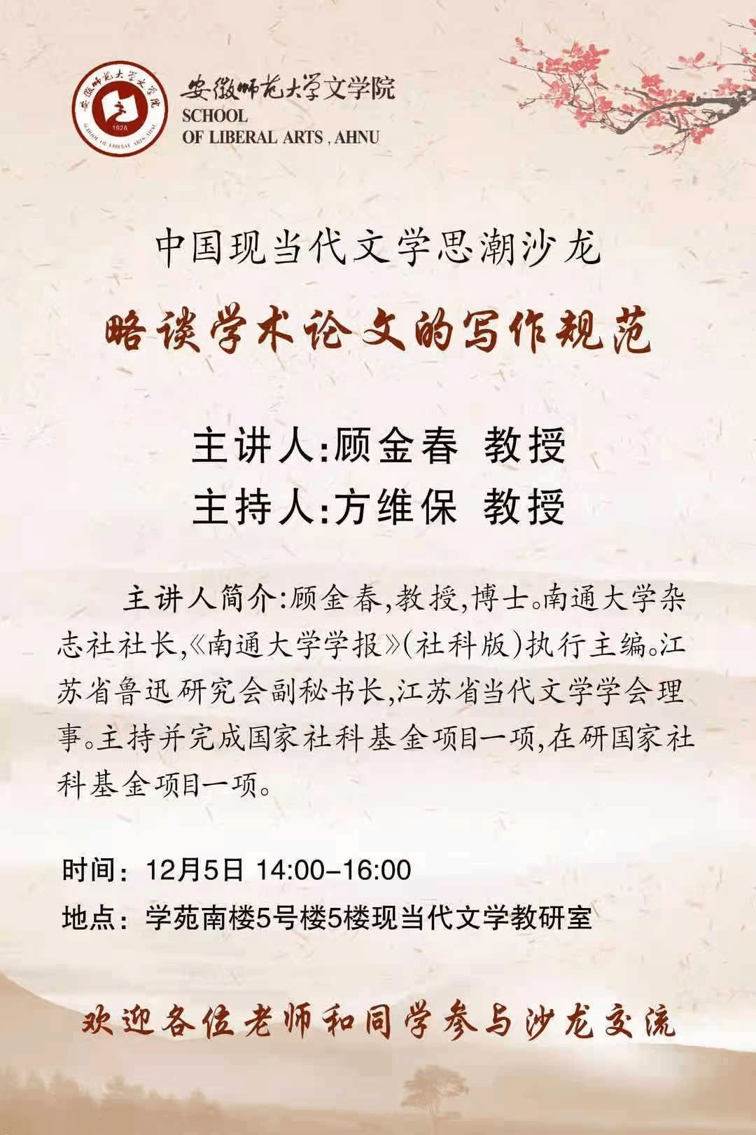中国现当代文学思潮沙龙预告