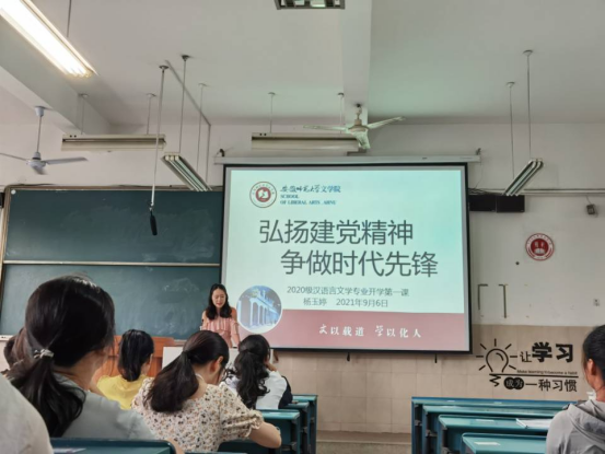 “羡子年少正得路,有如扶桑初日升。”迎着秋日朝阳,同学们回到熟悉的师大校园。为了进一步弘扬建党精神,了解新学期学生思想动态,9月6日至9月9日,2020级汉语言文学专业与卓越语文教师实验班分别开展了新学期“开学第一课”系列活动,辅导员杨玉婷主持并参加了活动。
