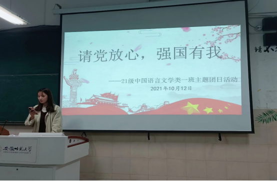 异彩纷呈,团日活动充实生活。开展多样活动,争办活力组织。团干选举工作完成后,各团支部迅速开展了丰富又具有意义的团日活动。在“请党放心,强国有我”主题团日活动中,同学们深刻地认识到,作为新一代青年人,从见证者成长为建设者,应勇担使命,堪当大任。请党放心,强国有我,这是新时代青年学生对党和人民的坚定承诺;此外,各团支部还开展了唱团歌、朗诵红色诗歌活动,同学们在这些活动中深刻地感受到作为团员的光荣……“我们是五月的花海,用青春拥抱时代”,激昂而富有朝气的歌声在金秋十月的校园上空回响,歌声中包含着新团员对团组织工作的热情和信心。