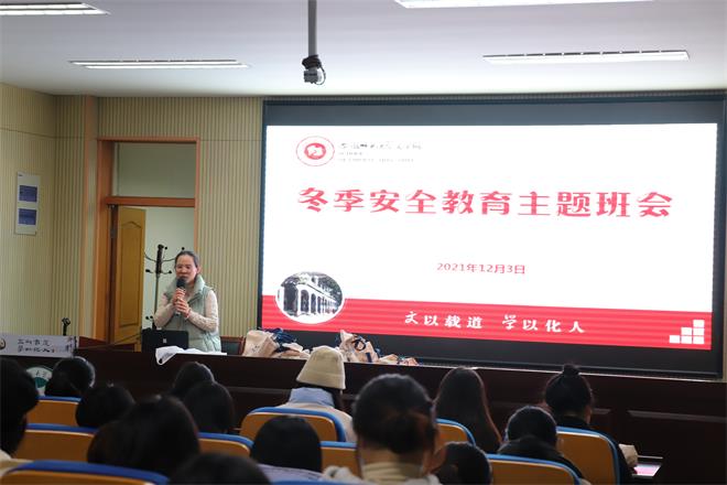 为进一步强化学生安全防范意识, 12月3日,2018级汉语言文学(师范)专业、2018级汉语国际教育专业于必赢线路检测3003no1行政楼三楼报告厅召开了冬季安全教育主题班会,会议由辅导员朱露露主持。