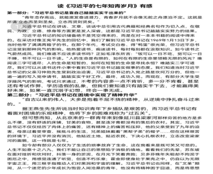 品读经典,青春共读。同学们在寒假期间不负时光,共读新时代经典,不断提高自身政治文化修养和精神品质,继承和发扬先辈勇于奉献、艰苦奋斗的优良传统,为新时代建设添砖加瓦。在阅读中感悟当代青年仍需继续奋斗、不畏劳动,应当以青年习近平为榜样,培养沉着心态,努力学习科学文化知识,将青春奉献给社会。
