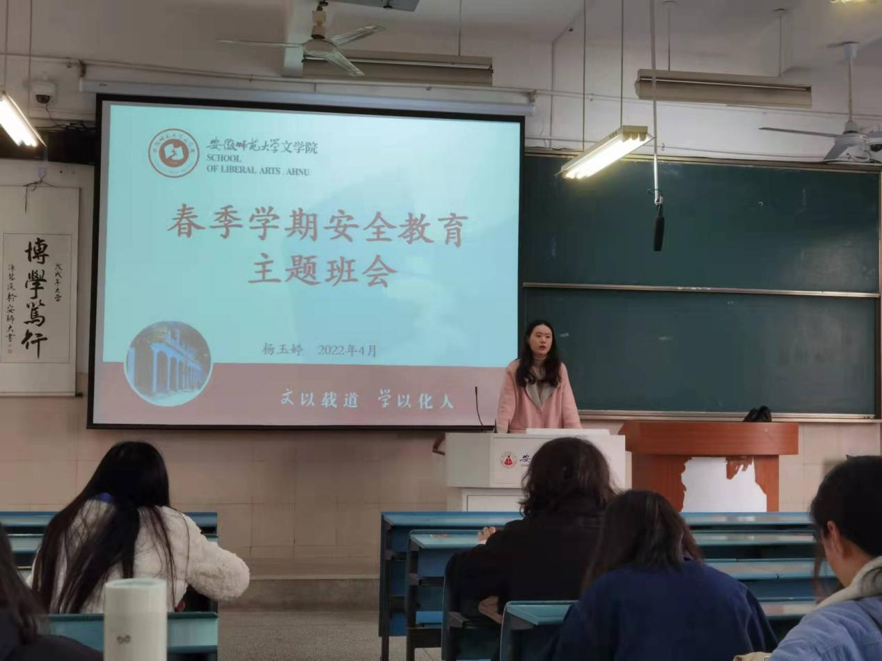 4月1日上午,20级汉语言文学师范专业在行知楼教室开展了春季安全教育主题班会,班会由辅导员杨玉婷老师主持,全体同学参与。
