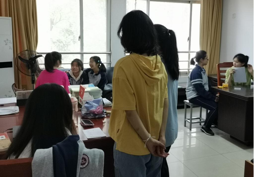 学习始终是学生的第一要务。为更好地深入班级,了解学生学习情况。自4月29日期中考试结束后,实习生们与带教老师共同分析班级学生各科成绩排名,在征得带教老师同意的前提下邀请部分学生来到办公室分析近日学习状况,引导学生说出近阶段学习方面所遇到的困惑。在交流过程中,实习生们及时记录学生情况,并针对学生的困惑给出建议,鼓励学生保持良好的心理状态,继续努力学习,裨补缺漏,不可松懈。通过与学生交流谈心,实习生们更加全面的掌握学生学习情况,体会到班主任管理工作的辛苦。