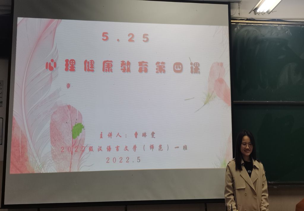 合理调适健康成长5月9日晚,同学们在行知楼开展“战疫同行,润心成长”主题班会,心理委员曹琳雯向大家普及了在疫情之下调节焦虑、恐慌情绪的重要性,并介绍了规律作息、放松冥想、互动沟通等方式,并提醒同学们明辨信息,不信谣、不传谣,遇到突发状况可寻求心理咨询。随后,同学们观看了红色电影“红高粱”,展现出了对生命的礼赞,调适了大家的心情,有效促进了班级凝聚力。