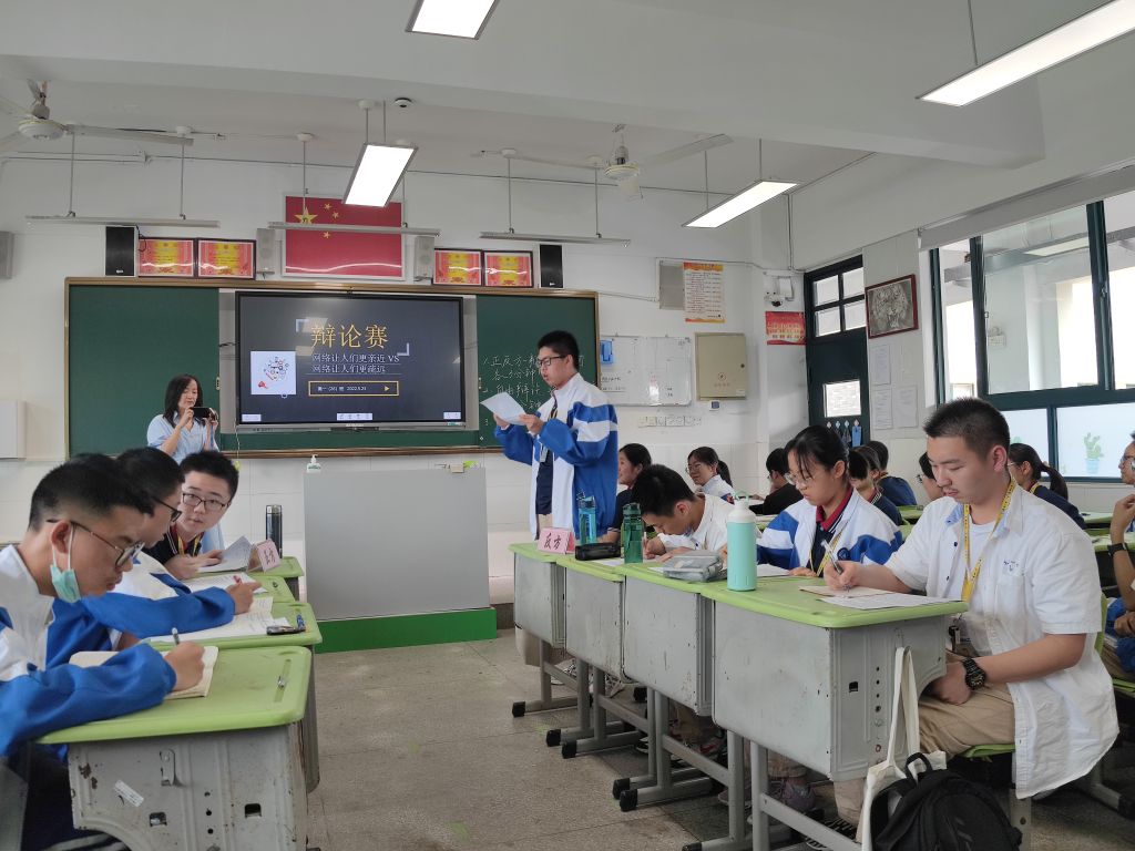 本网讯(文/图 代安保 张蕤)为顺利组织开展芜湖一中第18届校园科技节,培养学生的逻辑思考能力和语言表达能力,加深对于社会现象的思考,培养学生团队协作的能力和意识,5月23日,芜湖一中实习组同学们应邀参加高一(26)班班级辩论赛活动,本次辩论赛针对“网络使我们更加亲近还是更加疏远”的问题展开了激烈的讨论。