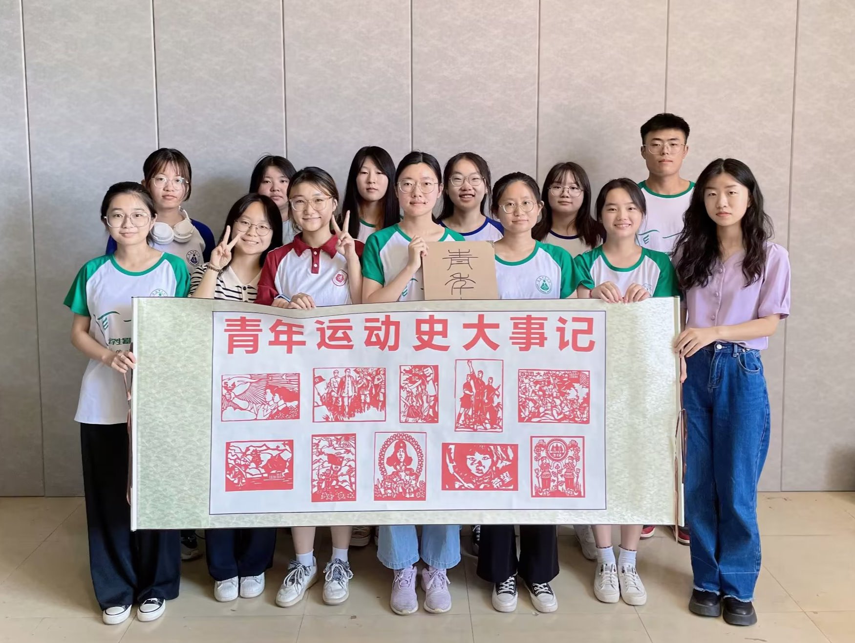 “欲穷千里目,更上一层楼。”线下实践活动接近尾声,团队剪纸实践组也最终完成了青年运动史大事记的剪纸卷轴的创作和青春剪影册的制作,剪纸组成员用手中的剪刀与红纸刻录了无数可歌可泣的青年运动英雄人物和历史事件。