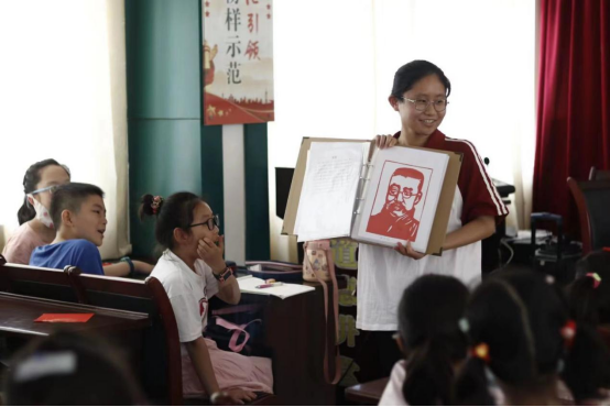 “问渠那得清如许?为有源头活水来。”非遗剪纸是中华优秀传统文化,团队成员们在学习剪纸技艺的同时也不忘弘扬,7月1日到7月4日,团队成员三次走进社区,与小朋友们共话剪纸魅力。从剪纸的起源到剪纸的发展,从纸张的分类到剪刀的类型,队员们利用剪纸艺术生动的向小朋友讲述党的青年运动史,小小红心永向党。