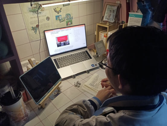 线上部分,同学们学习了“中国这十年”新闻发布会,并以寝室为单位展开讨论。陈成同学围绕着中国的脱贫攻坚速度,感叹中国共产党的伟大向心力与执行力;余科建同学看到了国家一直以来推动的绿色发展、建设美丽中国,从家乡日新月异的变化出发,认为中国这十年是人类与生态和谐发展的十年;还有同学提出这十年里中国外交不断创造新历史,在风云变幻的时代环境中,以实际行动拥护“两个确立”、践行“两个维护”,展现了大国风范。