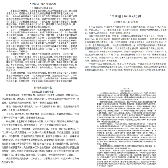 在团日活动的尾声,同学们再次对“新时期的伟大成就”进行总结思考,并撰写了学习心得。