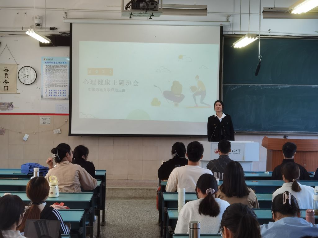 良好的心理健康更需要适当的调节。因此,20级汉师一班曹琳雯同学带领大家进行了户外拓展活动、主题班会活动和辩论活动。其中户外拓展活动包括“密码传递”“解开千千结”“信任背摔”等。游戏中,同学们的笑声与笑容温暖了大家。在班会上,同学们就“学习与生活的困惑”“人生意义”等进行了思考,曹琳雯鼓励同学们敞开心扉、树立积极的生活态度,学会以团队的形式与同伴携手解决困惑、稳定心态。辩论会上,两方同学就“‘稳定与高速’——爱与被爱”的话题进行了多方面的讨论。除此之外,20级卓越语文教师实验班韩玉滢同学还组织开展了“心语相约”读书分享会。活动中,各团小组同学代表向同学们分享了近期阅读中的心得体会,《蛤蟆先生去看心理医生》《当尼采哭泣》《心》,现场同学就分享人推荐的书籍展开了热烈的讨论。最后,在活动尾声之时,同学们写下自己的心愿纸条,敞开心扉,拥抱明天。