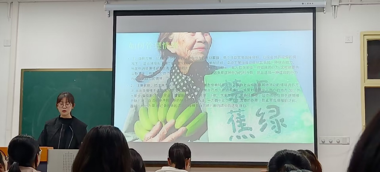 随后她解释了例如“心理防御”等有关于心理的词汇,让我们又进一步了解了心理知识。紧接着她给出了解决的方案,她提到我们该如何管理情绪,以分点的方式有条理的,清晰的向同学们展示了做法,让同学们大有所获。