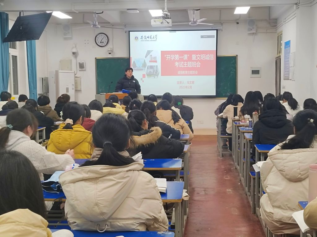 为促进同学们学习贯彻党的二十大精神,提高同学们的诚信考试意识,2月13日,2022级汉语言文学师范专业在天门山北教学楼开展“开学第一课”暨文明诚信考试主题班会,此次班会由辅导员冯文君主持。