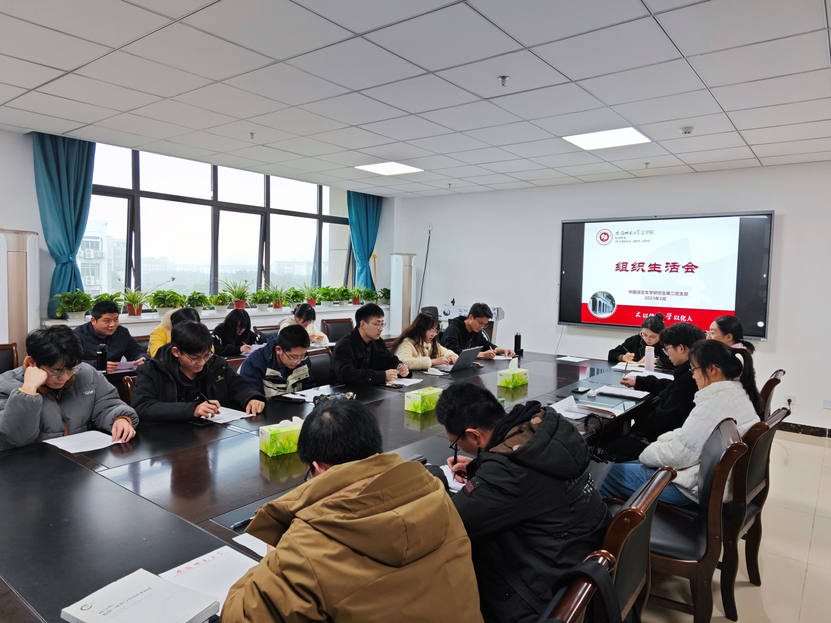 为全面贯彻习近平新时代中国特色社会主义思想,深刻领悟“两个确立”的决定性意义,增强“四个意识”、坚定“四个自信”、做到“两个维护”,3月21日下午,中国语言文学研究生第二党支部在文典楼四楼会议室召开组织生活会。会议由党支部书记孙霁雯主持,院党委副书记(主持党委工作)戴和圣到会指导。