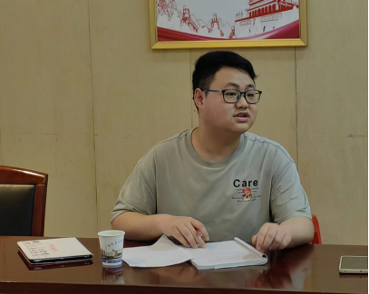 (图为实习组长刁世硕进行实习工作汇报,刘海摄)