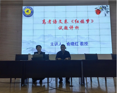 4月18日晚,为共建实习基地、推动《红楼梦》“整本书”阅读与研讨的开展,中国红楼梦学会副会长、实习指导教师俞晓红教授在和县一中经纬楼大讲堂举办“高考语文卷《红楼梦》试题评析”讲座,为全体高三学生和语文教师讲解历年高考语文中涉及到《红楼梦》的相关试题,并对出题规律进行了解析。讲座现场气氛热烈,同学们认真听讲,积极参与互动,为俞晓红教授的深厚学识和生动讲解而深深折服。会后,不少同学拿着自己的《红楼梦》请俞晓红教授签字留念。本次讲座共1000多人参与,是将高校学术资源输送到教育前线、使学术成果服务于基础教育的生动范例。