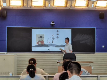 5月9日,在北城中学高一语文组全体教师的组织领导下,10位实习生在年级部集体备课室、合班教室围绕高中语文必修下册古诗词诵读《念奴娇·过洞庭》展开无生试讲,实习小组指导老师程维前往北城中学观摩与指导。