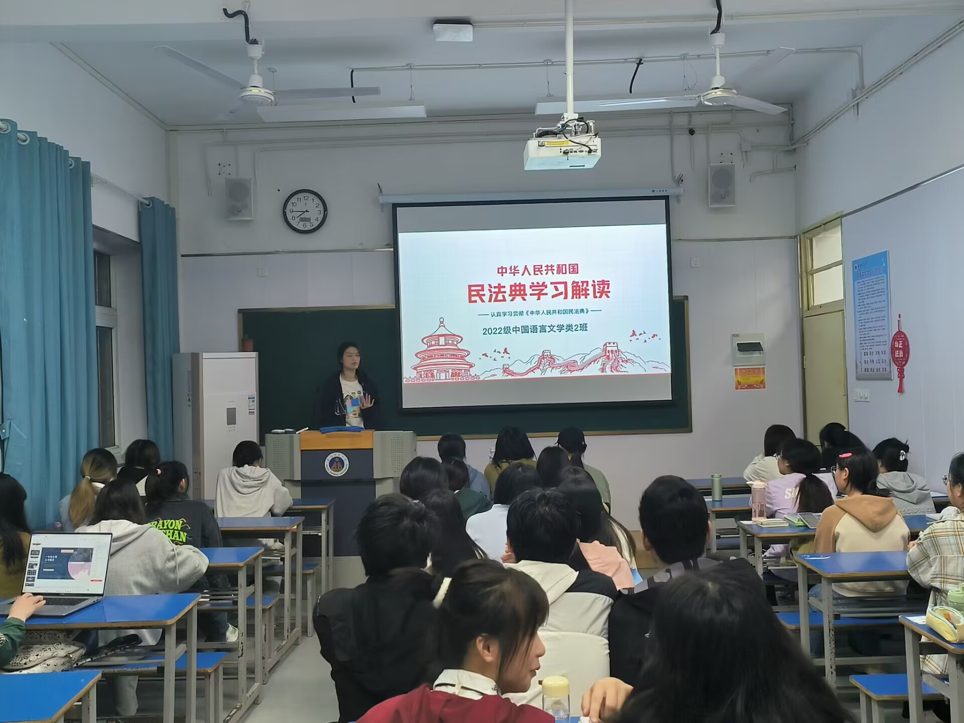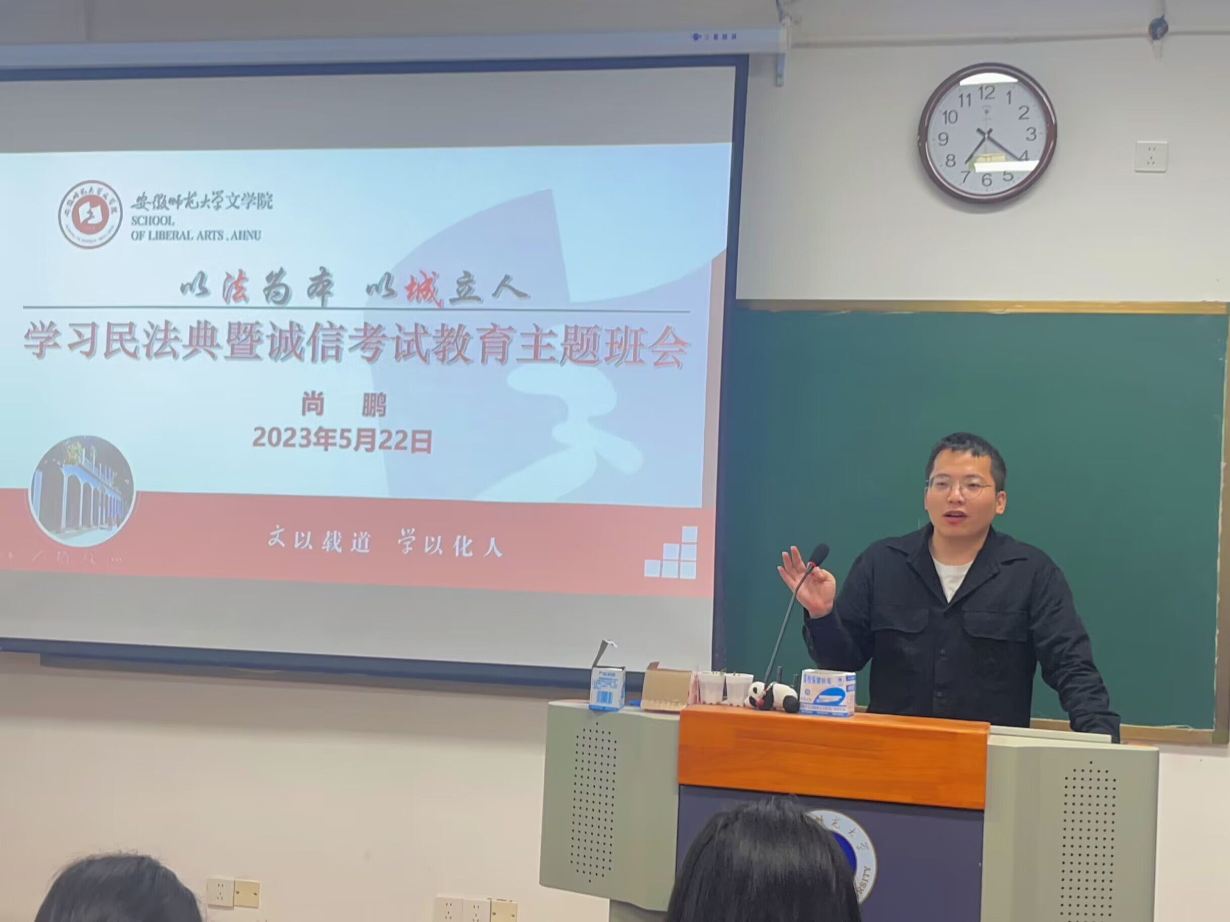 “法”护成长,“典”亮心灯。为了加强法制教育宣传,增强学生的法律意识,让学生更加了解民法典的内容和意义,让学生养成知法、学法、懂法、用法和依法办事的习惯,树立良好的校园风气,维护法治社会的稳定发展。2023年5月22日必赢线路检测3003no122级中国语言文学类2、3班于天门山校区北教学楼109、212教室召开《民法典》学习暨诚信考试教育主题班会,班会由辅导员尚鹏老师主持。