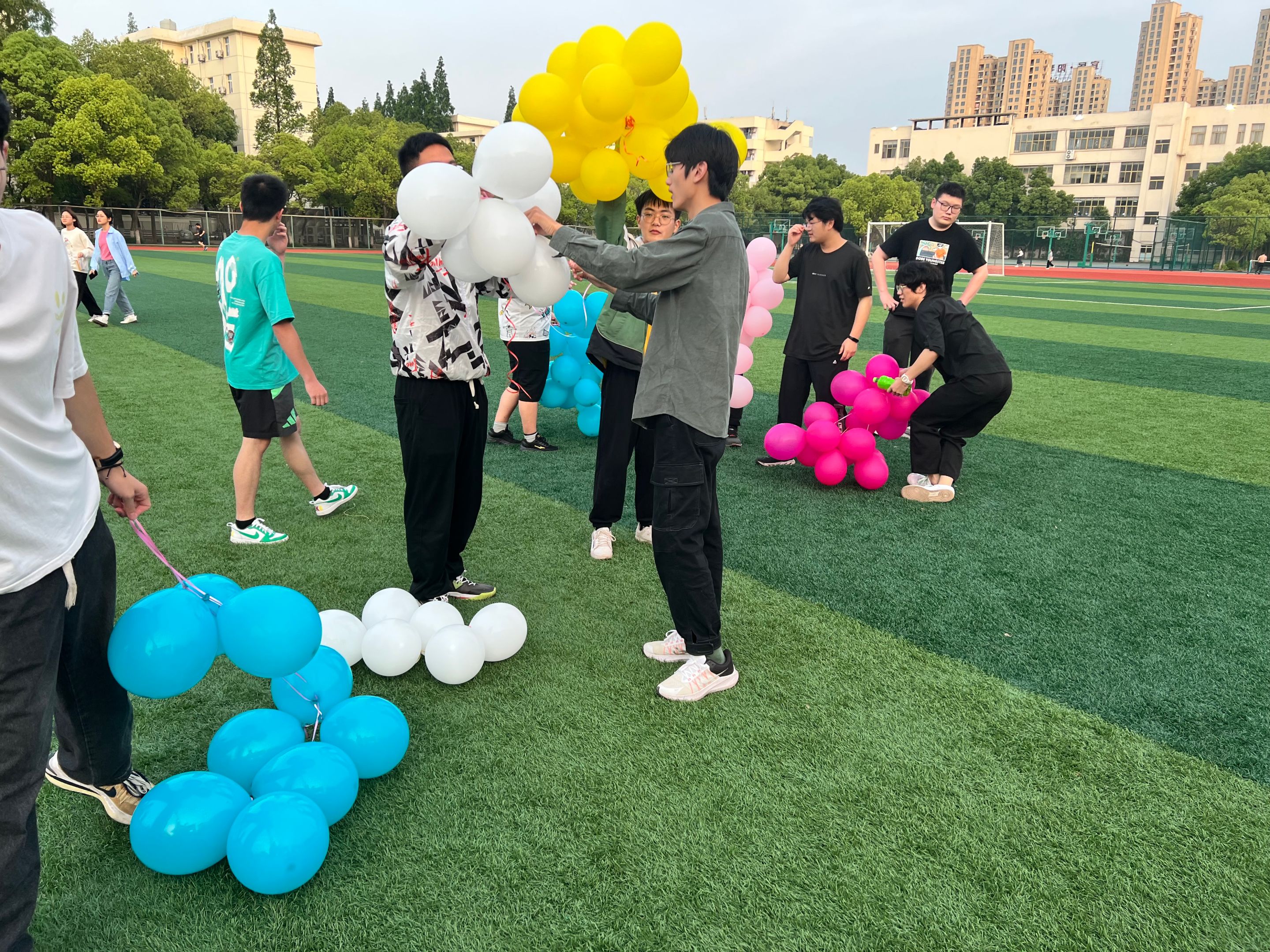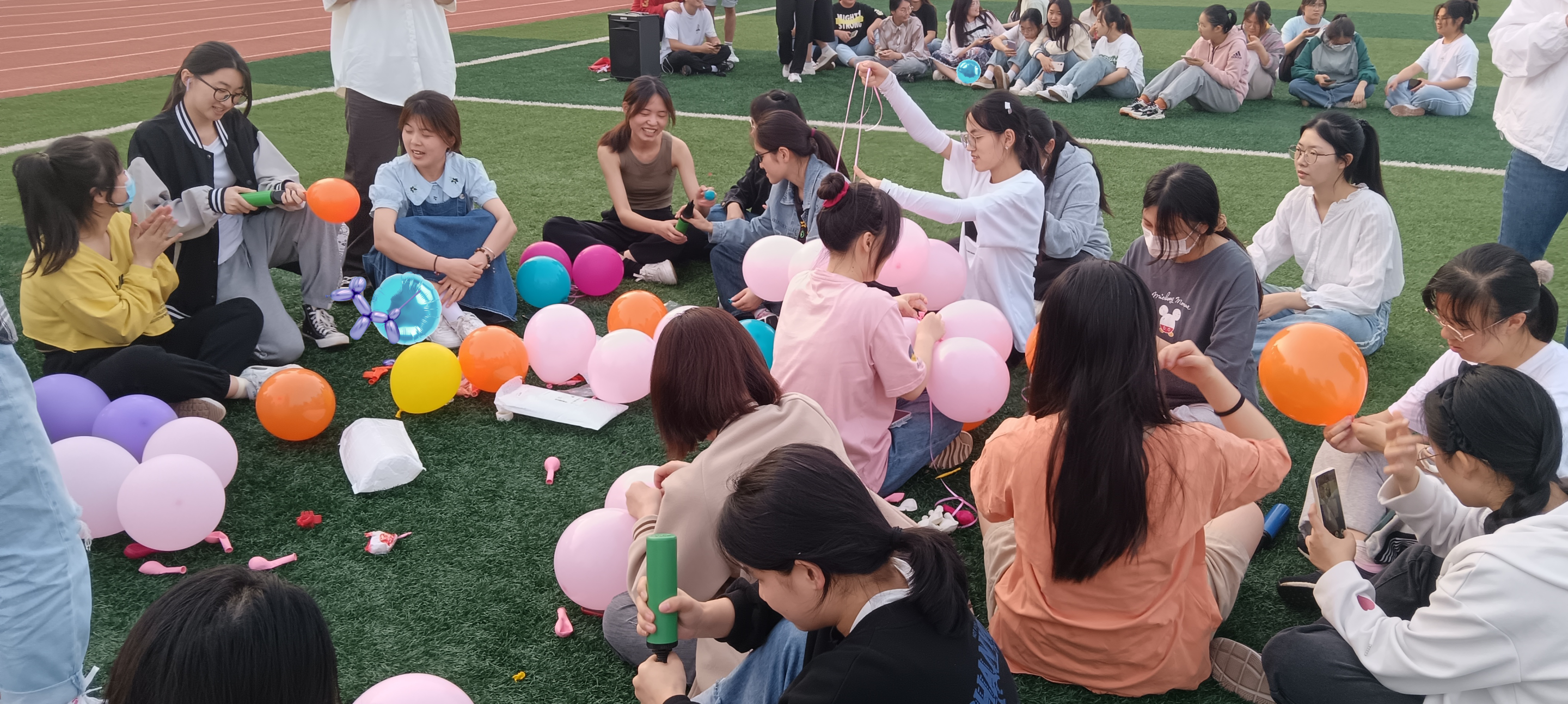 娱乐活动展风采。5月25日下午,汉语言文学(师范)二班全体同学于操场上开展娱乐活动。其主要活动是“砰砰砰”游戏,游戏分为两大组,每大组中另设小组,以不同颜色的气球进行队伍的划分,每个队伍要尽力保护自己颜色的球,破坏其他颜色的气球,气球最先爆完的小组,接受“真心话”或“大冒险”的惩罚。游戏的准备环节,同学们一起准备道具,给气球打气,共同参与到游戏中来。游戏中声声气球爆破声夹杂着欢声笑语,活动给人带来欢乐之外也促进了同学们的团队协作能力,促进了同学情谊,舒缓了心理压力。挑战失败的小组,共同进行“真心话”与“大冒险”活动,团队共同接受惩罚,体现了团队凝聚力。