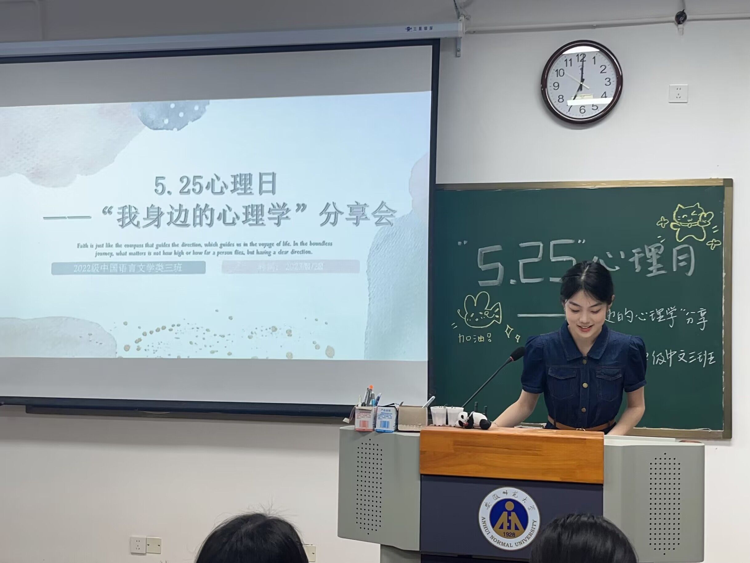 5月25日,2022级中国语言文学类3班于天门山校区北教学楼212举办了主题为“我身边的心理学”心理健康主题教育班会。2班全体同学参与。旨在响应学校五月心理月号召,增强学生心理健康意识,促进良好的人际交往,建立和谐的人际关系。