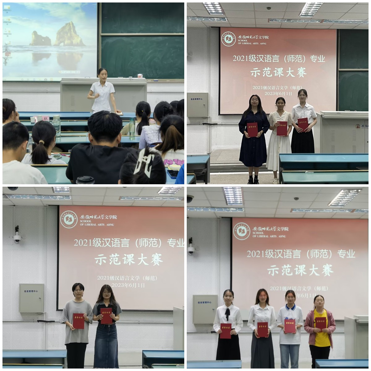 本次比赛经过激烈的角逐,李曜杉、黄卓嘉同学荣获一等奖;雷天琴、简梦洁、高思佳荣获二等奖;马欣月、曹吉吉、陈欣然、常馨悦荣获三等奖。本届示范课大赛的成功举办,为师范生提供了一个学以致用的实践与交流平台,以赛促练、以赛促训、以赛促学、以赛促质,对提高我院师范生的教学实践水平起到了积极的促进作用。