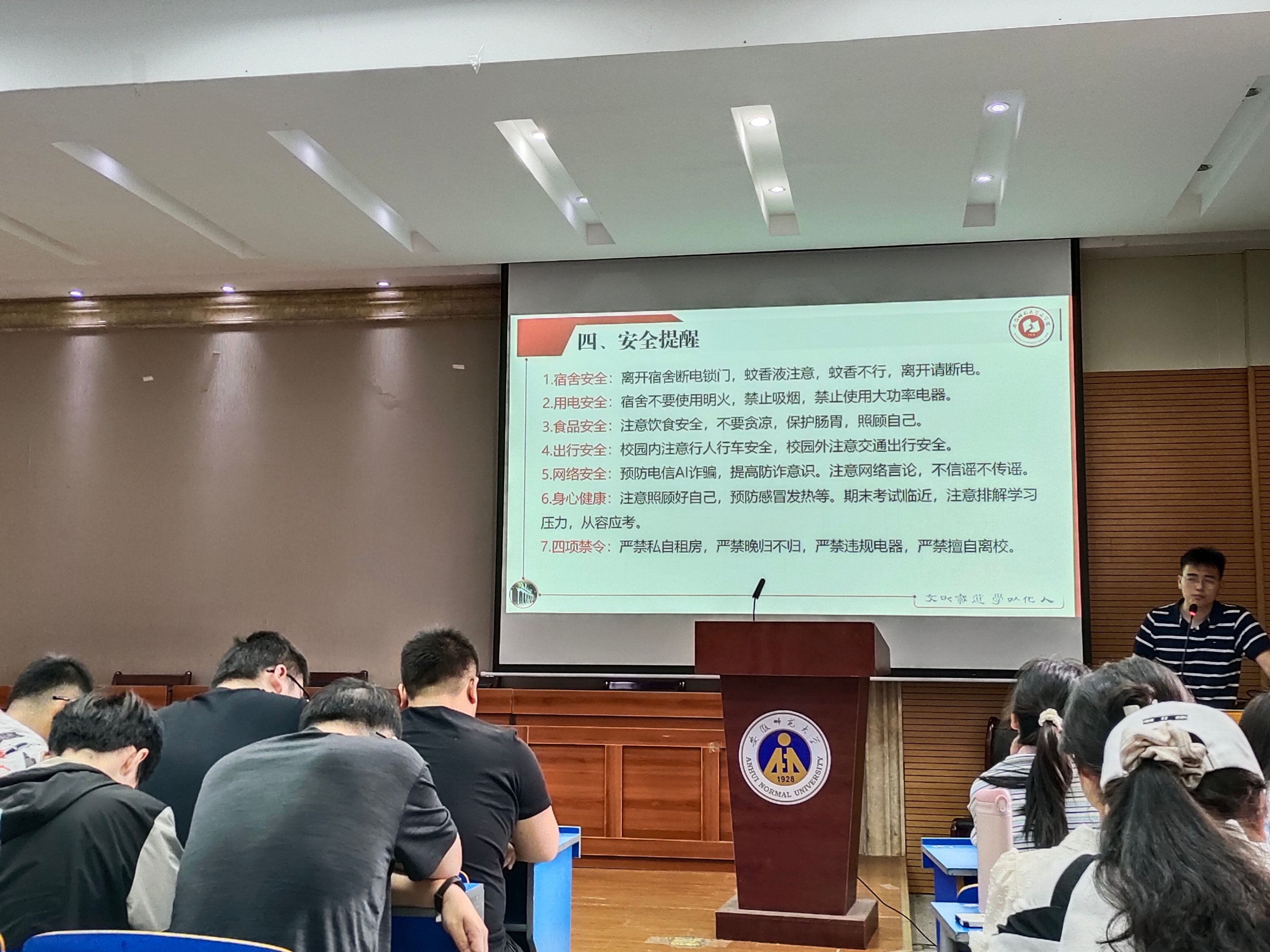 有序搬迁,注意安全。着重向各位同学告知校区搬迁相关注意事项,包括于各个宿舍安排、搬迁车辆安排,相关物资提供等。他提出要做到人物统一,个人负责,坚持“谁物品、谁管理、谁负责”的原则。加强相关安全提醒,在同学们搬离校区时做到宿舍安全、用电安全、食品安全、出行安全等,并再次强调四项禁令不可违背。