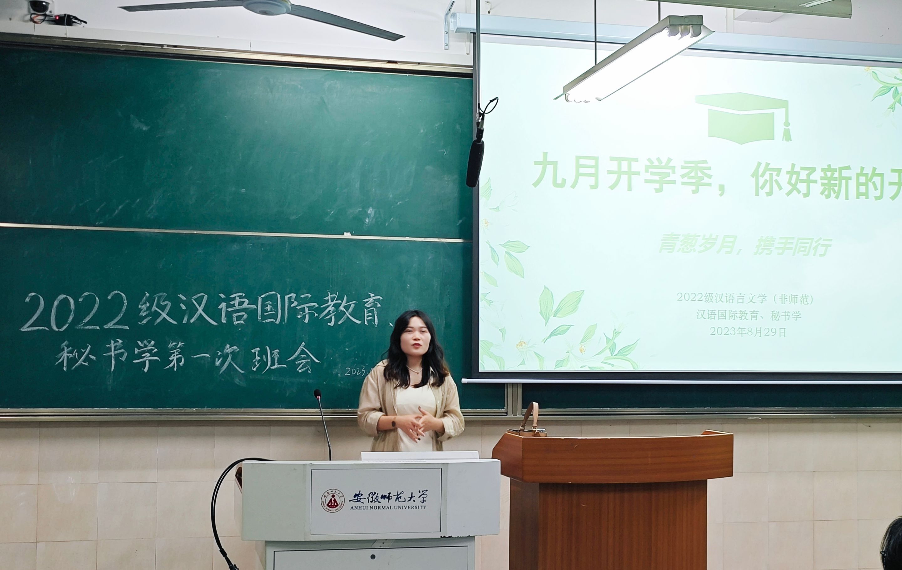 乘势而上开新局,扬帆启航再出发。为推动各专业班风、学风建设,指导学生做好二年级学业规划,以饱满的精神面貌更快更好地投入新学期中,2022级汉语言文学(非师范)1、2班、汉语国际教育与秘书学专业于8月29日晚顺利开展了“开学第一课”主题教育班会。