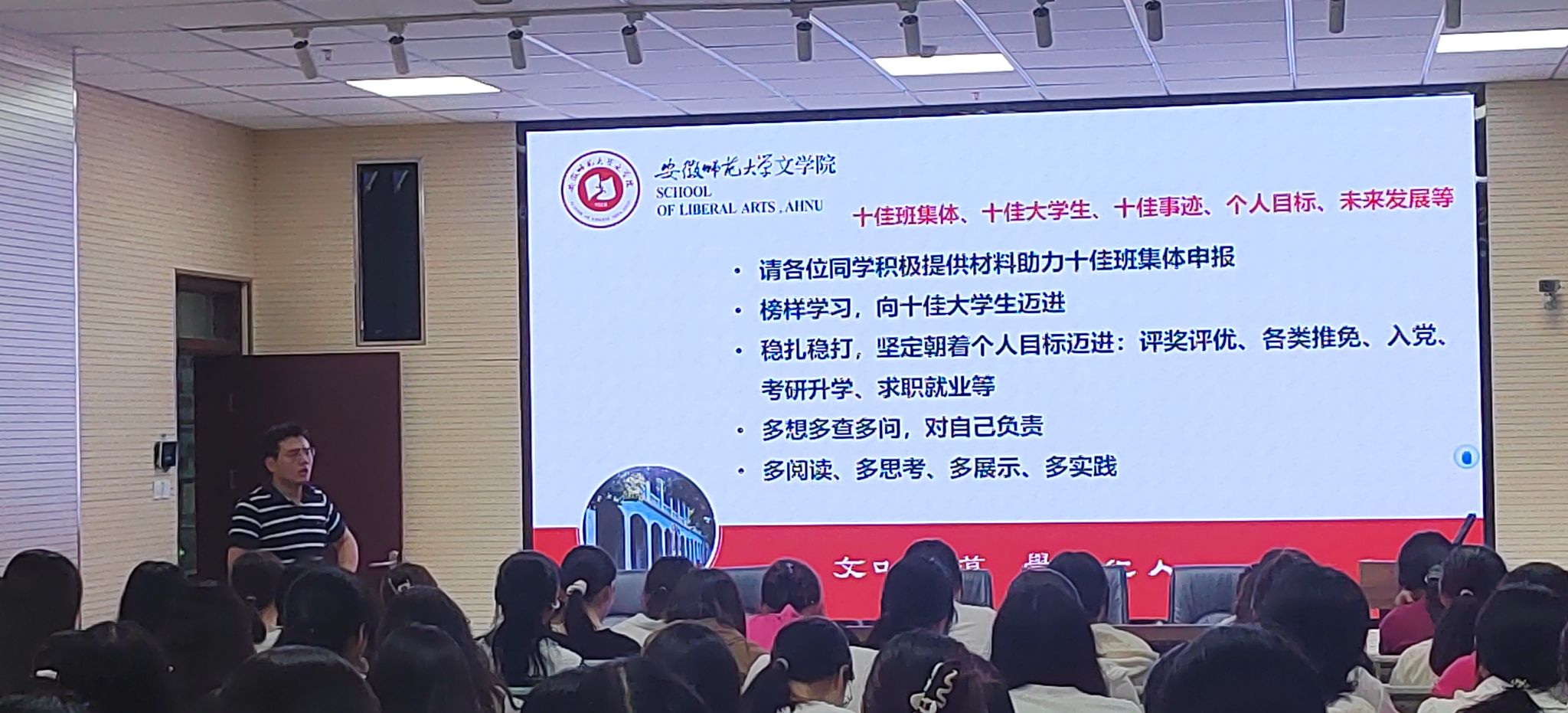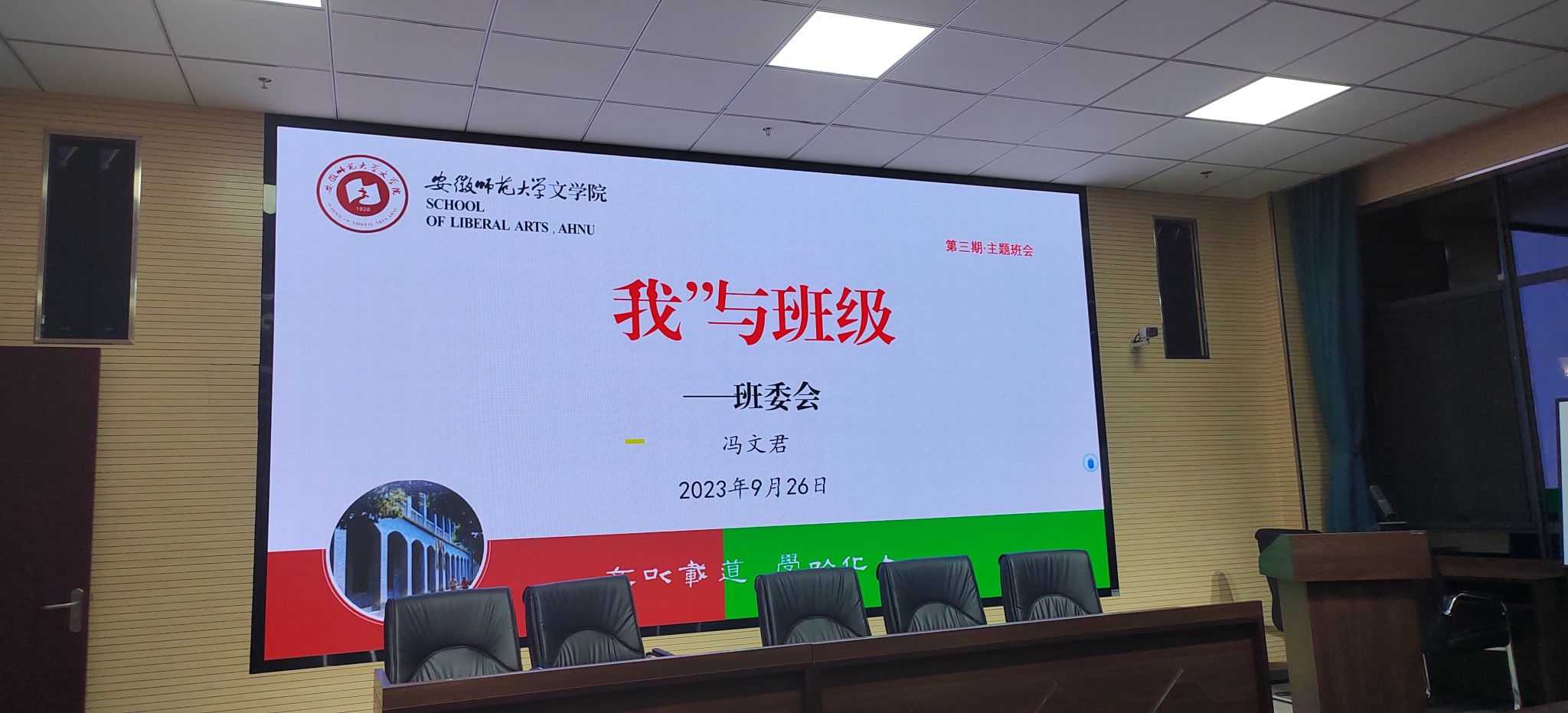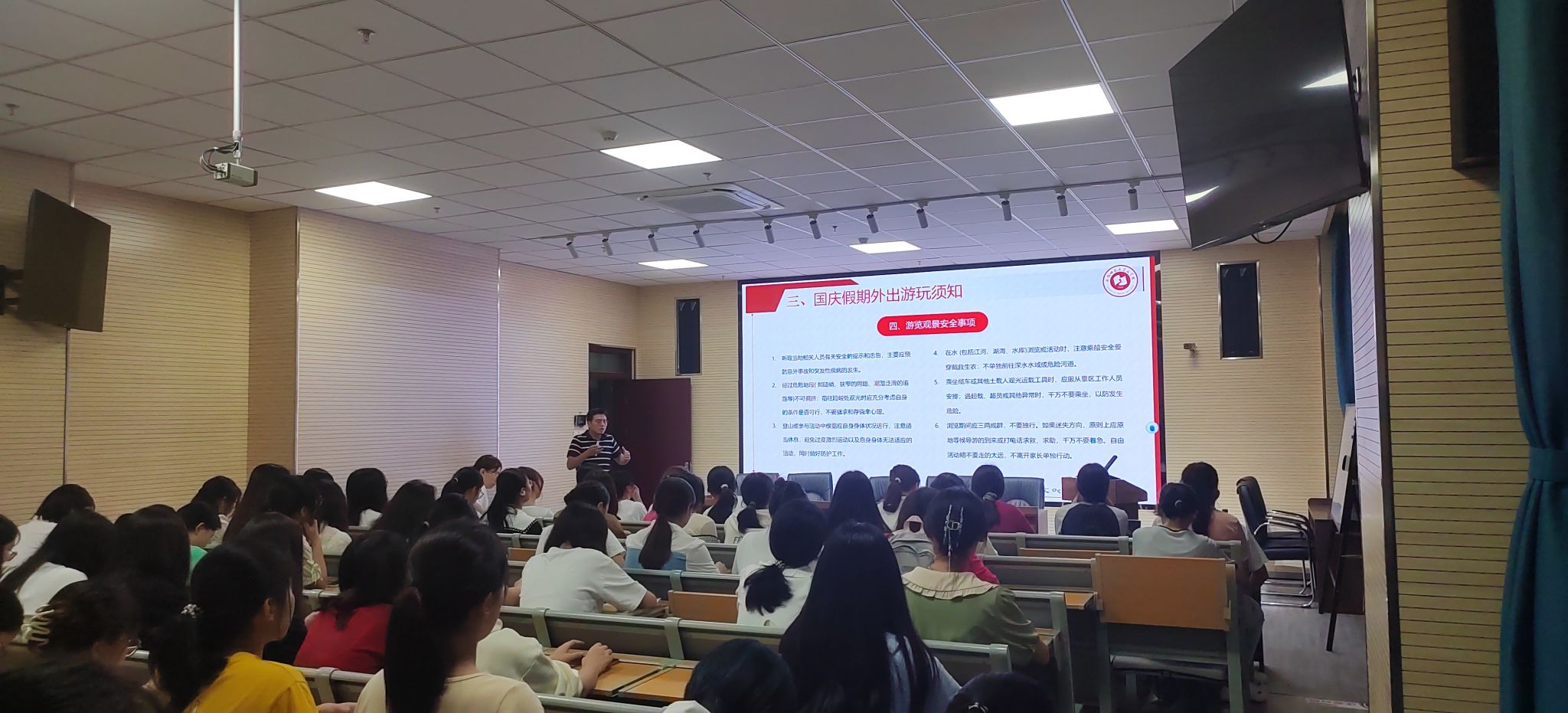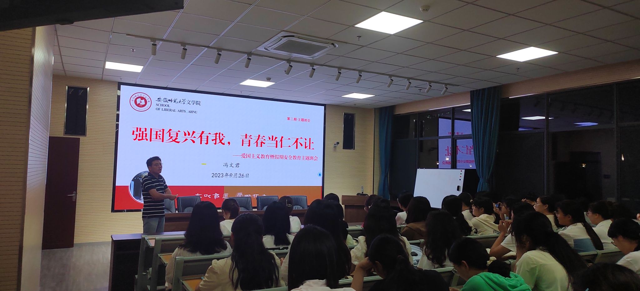 9月26日,汉语言文学师范专业的同学在辅导员冯文君的带领下,于文典楼报告厅开展了国庆假期安全教育主题班会。