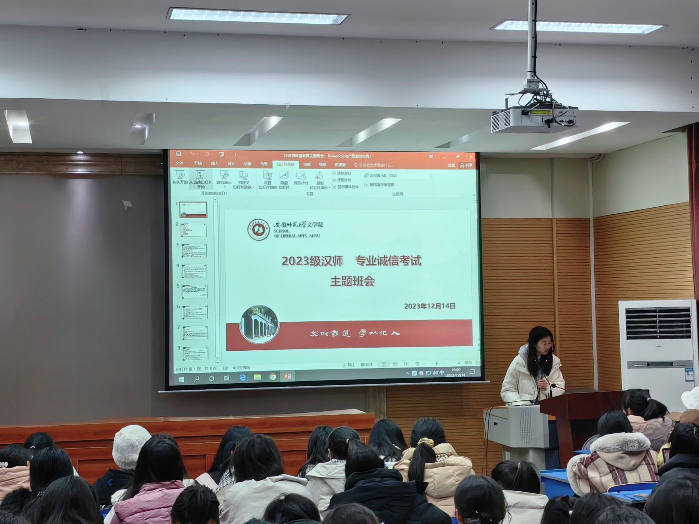 古人云:“人无信不立,树无根不固”。临近学期期末考试,为培养同学的诚信考试意识,端正同学对学习和考试的态度,弘扬诚信美德,必赢线路检测3003no12023级汉语言文学(师范)专业于12月14日晚在天门山校区图书馆报告厅举行诚信考试主题班会。班会由辅导员胡慧主持,汉语言文学(师范)专业全体同学参与本次班会。