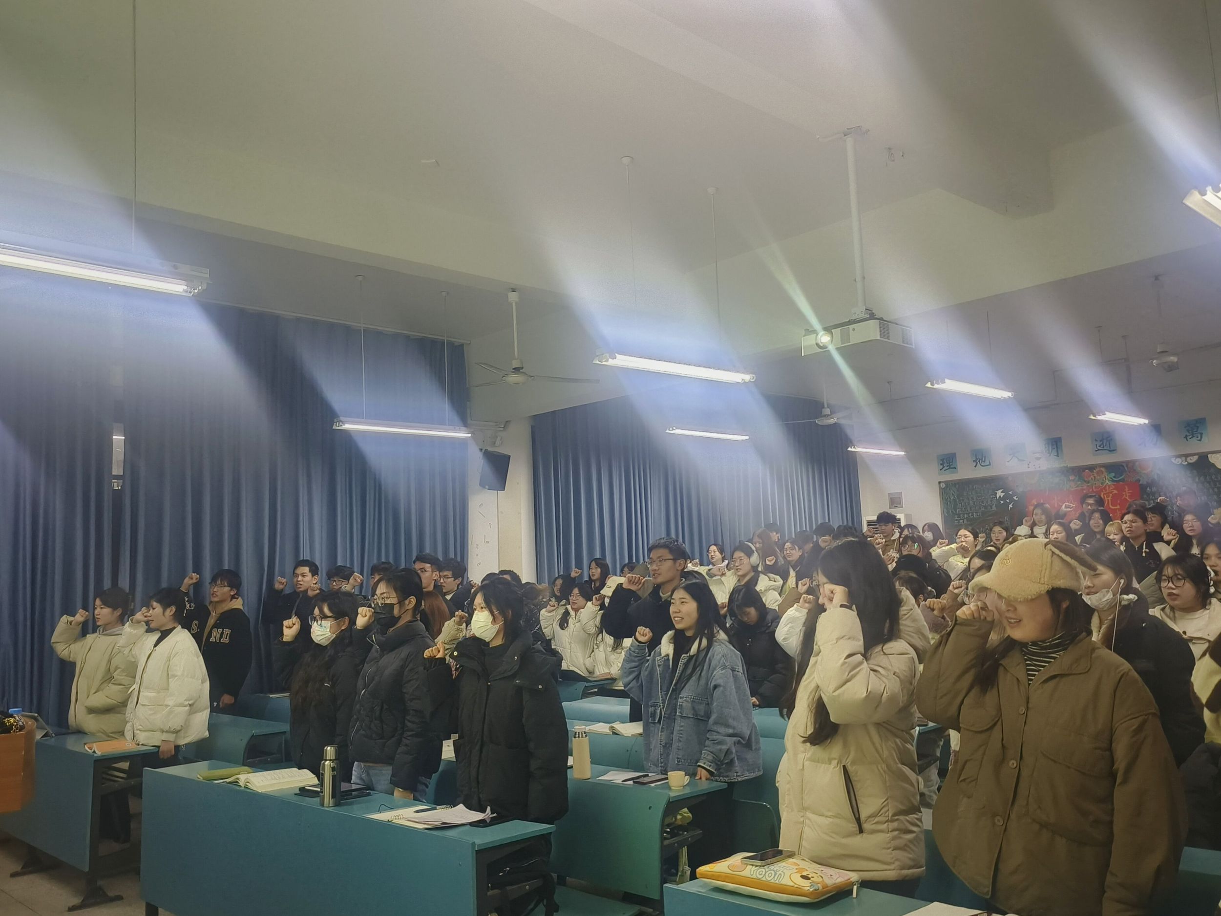 会议最后,全体同学宣读诚信考试誓词,同学们积极表示在本次期末考试中做到诚信考试,做诚信学子。