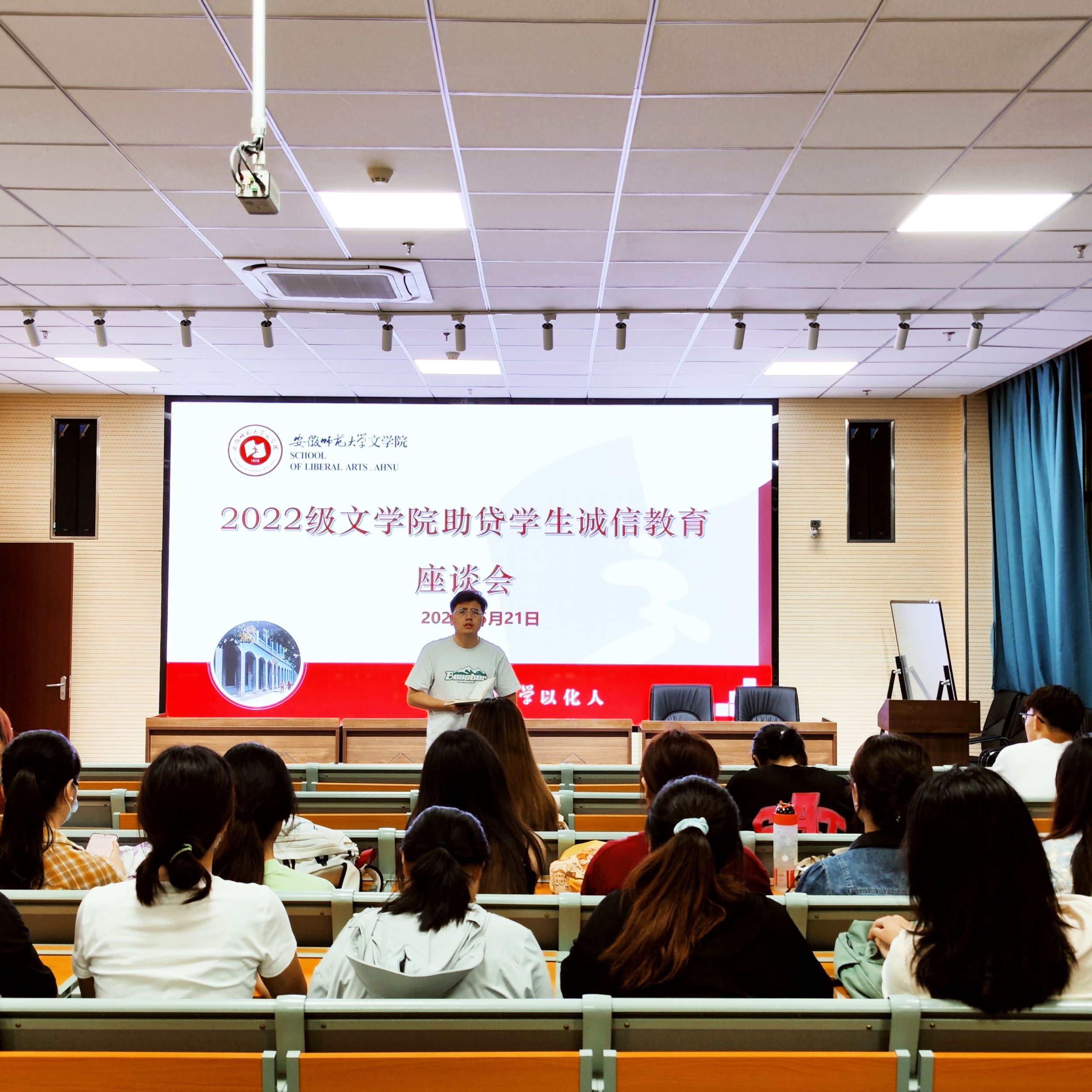 为促使同学们充分认识资助诚信教育活动的重要性和必要性,树立诚信观念、增强法律意识,及时履行国家助学贷款合同,有效地将诚信教育转化为大学生自觉的素养与行为。5月21日下午,2022级汉语言文学专业于花津校区开展了助贷学生诚信教育座谈会,会议由辅导员冯文君主持。