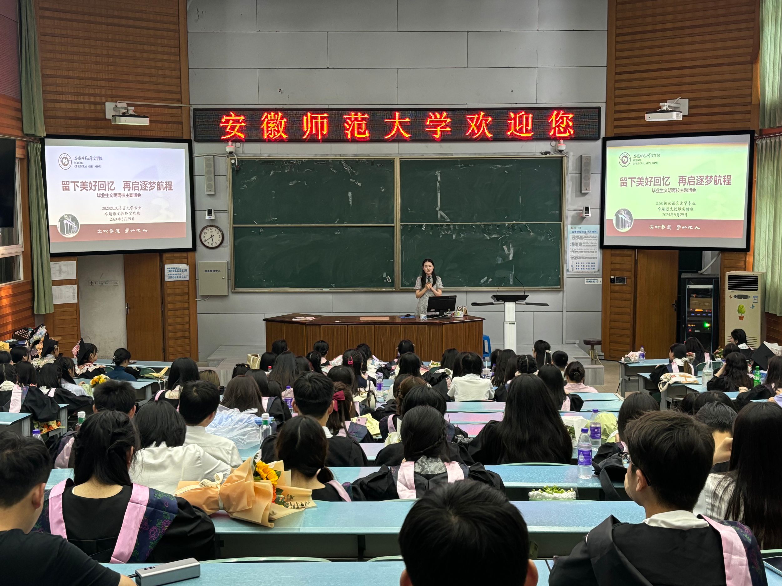 留下美好回忆,再启逐梦航程。为营造安全健康、文明有序、积极向上的毕业季氛围,增强毕业生爱校荣校情怀,切实做好2024届毕业生思想政治教育与文明离校工作,5月29日下午,2020级汉语言文学(师范)专业在行知楼2010105教室顺利召开毕业生文明离校主题班会。班会由辅导员杨玉婷主持,全体同学参与。