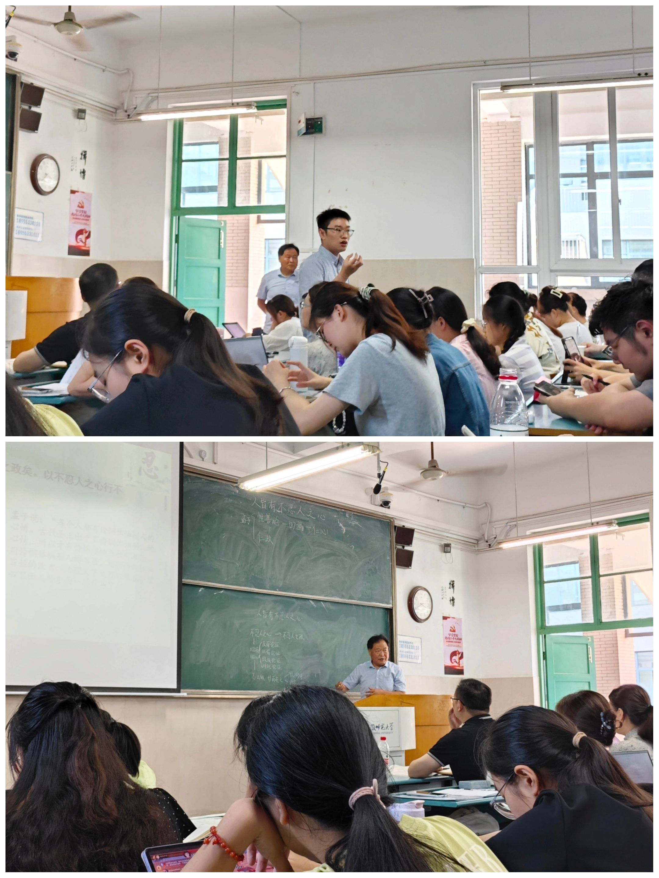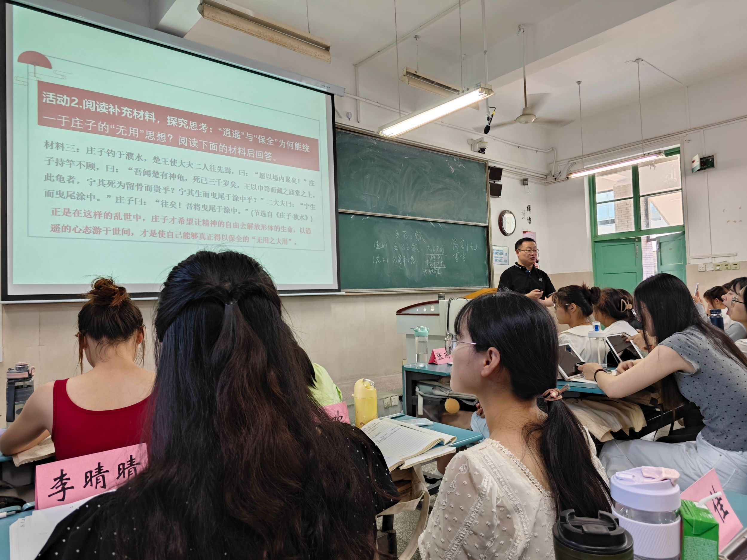 名师教学,巧思打开教学视野。近两周小学期,学院迎来了多名优秀教师授课。各位教师在课堂上从多个方面展示了优秀语文课如何设计和教授,课程分为有生上课、无生上课、说课和讲课四大类。各位老师教学风格鲜明,主题明确,围绕高中语文教材和高考展开内核深挖和外延拓展。学生们积极参与课堂互动,对教学方式和设计有了系统性了解,对课堂上出彩、新意的地方及时记录学习,并运用到自己的实训之中。