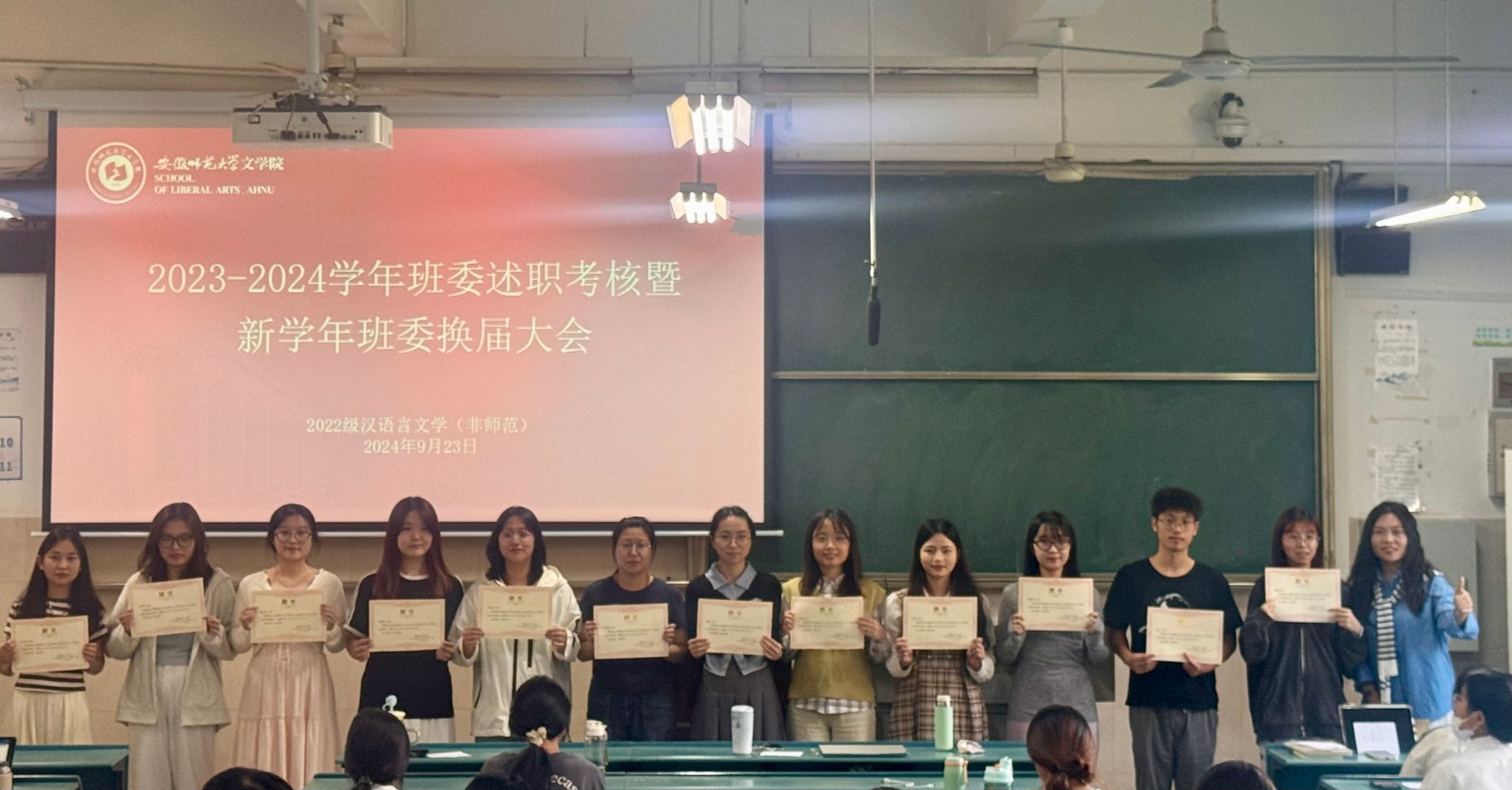 新学期伊始,为更好地加强班级建设,凝聚班级向心力,提升班委工作能力,9月23-24日,2022级汉语言文学(非师范)、汉语国际教育、秘书学专业开展2023-2024学年班委述职考核暨新学年班委换届大会,本次大会由各班班长主持,辅导员唐宇晴到场指导。