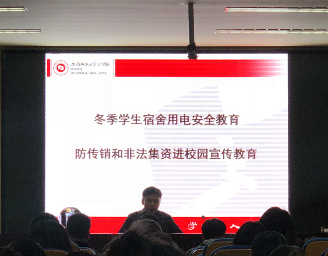 最后,戴书记就冬季学生宿舍用电安全向大家提出了要求,在熟悉校纪校规的同时,班委要做好每周查寝工作,同学们也应增强自身安全意识,提高安全防范能力,自觉遵守相关规定,不使用违规电器,文明规范安全用电。他还就“防传销和非法集资进校园”主题,进行了专题宣讲和教育提醒。
