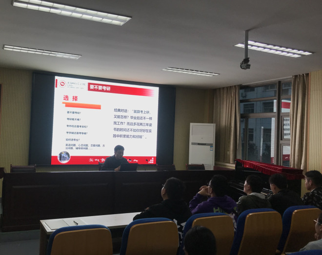 紧接着,戴书记介绍了考研的相关情况。他指出:“我们应找准定位,不随波逐流,走好自己的路”。