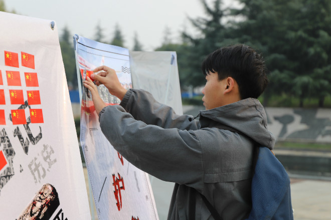 最后一个主题点设置在距起点3000米处,旨在纪念南京大屠杀30万遇难同胞。讲解员展示了有关战争的史实,强调了战争的罪恶与残酷,呼吁同学们爱好和平,反对战争,做传播和平的使者。讲解结束后,同学们在签字板上写下自己姓名,并在粘贴板上贴上国旗,以示自己对祖国的热爱和对和平的向往。
