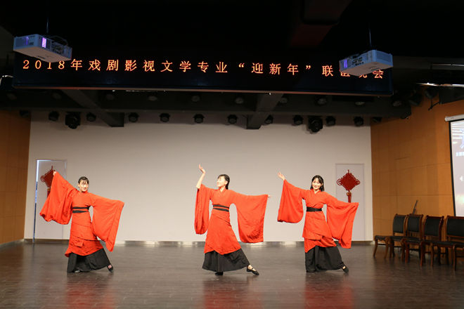 12月12日晚7点整,在温馨的回顾视频中,2018年戏剧影视文学专业“迎新年”联谊晚会开始了精彩的亮相,在主持人热情洋溢的解说下,歌曲、舞蹈、小品、朗诵等多种表演形式悉数登场,可谓精彩不断,笑声连连。一段《逐影》舞蹈串烧向我们演绎了戏剧影视文学专业的三个年级对“戏中求真,光影同行”专业口号的深刻理解,同学们不仅用优美的舞姿为我们带来了精彩的视觉盛宴,还把新年的祝福送给了大家;由《光年之外》《想把你留在这里》《凉凉》组成的流行歌曲串烧着实让同学们大饱耳福,纷纷直呼过瘾;同学自创的小品《青春校园》取材于日常的校园生活,通过幽默风趣的表现手法向我们演绎了青春里的那些故事,其中剧中F4的精彩表演更是引发全场爆笑;略带悲伤情绪的抒情歌曲《泡沫》引发了同学们对时间的思考;配着悠扬伴奏的朗诵表演《朗诵者之歌》使我们静心去倾听声音的独特之处;曾获校心理剧大赛银奖的话剧《搁浅》的再次上演展现了话剧的魅力,彰显了专业的能力。
