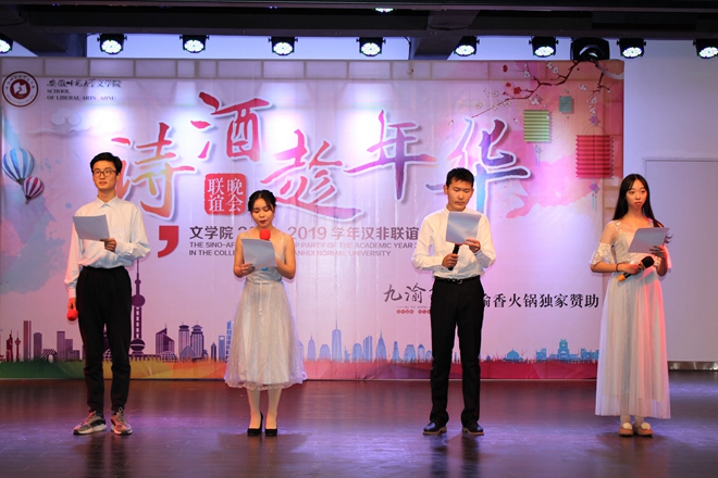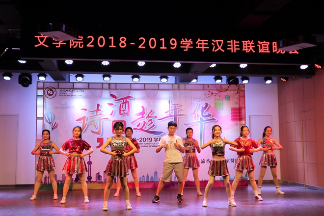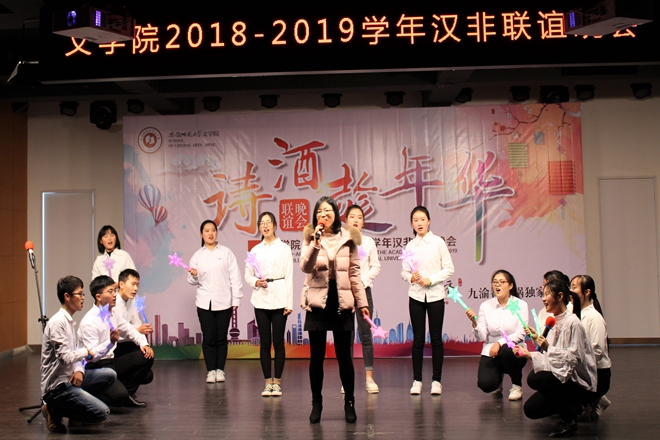 晚会不仅有古韵,更是有新阙。杜中强和洪淑君等同学带来的《温柔》用动人的歌声“温柔”听众们的耳朵。接下来的舞蹈串烧动感热情,将现场气氛推向高潮。来自2018级汉非专业417寝室的弹唱《花津河畔的夏风》意味青春正好,你我同行。4名同学们的朗诵篇目《相信未来》,为观众们勾勒未来美好;辅导员赵静老师和同学共同演唱的歌曲《樱花草》,用点点星光照亮整个舞台,更点亮汉非人的美好未来。杨穆龙老师和牛畅同学合作的三首歌曲活泼动人,孙亚和韩明兴同学带来的歌曲串烧更让现场观众沉醉其中。带着同学们的殷切期盼,饶宏泉老师一首清唱《天黑黑》,动人的嗓音让大家回忆起家的温暖。