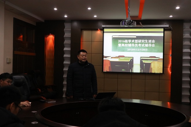 12月26日晚,2016级学术型研究生班在学院五楼会议室召开高校辅导员招考培训会。培训会由研究生秘书陈霄主讲,2016级学术型研究生代表参加了此次培训会。