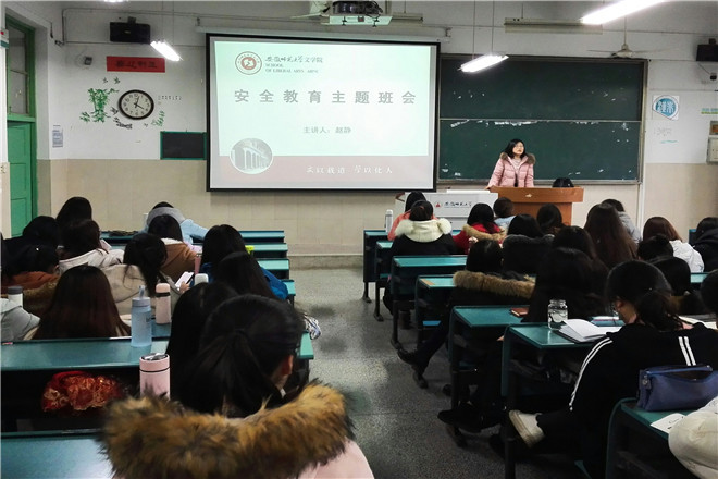 为切实增强同学们期末关键时刻的安全防范意识、维护正常的教学秩序、落实“安全重于泰山”的理念,12月19日下午,辅导员赵静老师在2050204教室就“冬季安全教育”问题召开主题班会。