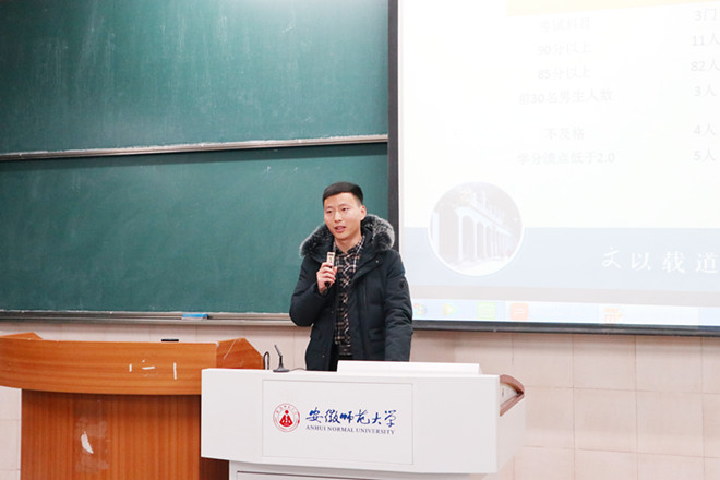 “悟已往之不谏,知来者犹可追。”班会伊始,周老师从平均分、优秀率、学分绩点等方面对上一学期期末测试成绩作了较为详细的分析。他肯定了班级同学刻苦向学的精神,同时也指出了同学们在学习上存在的不足之处,勉励同学们继续努力,再创佳绩。周老师还以此为切入点,结合师生日常交流情况,在专业学习、教学实践、为人处世、人生规划等方面给予针对性的指导。他重点指出以下几个方面的情况: