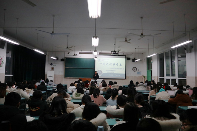 新学期,新征程。2月25日晚,16级汉语言文学(师范/非师范)分两个批次在2050503教室召开新学期主题班会。班会由辅导员周青松老师主持,班级全体同学到场参会。