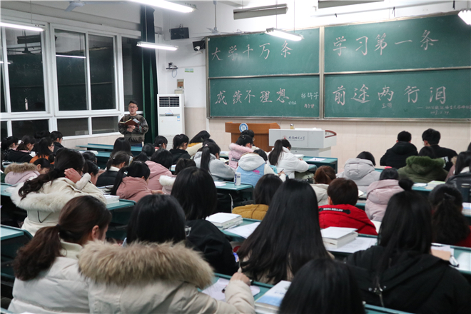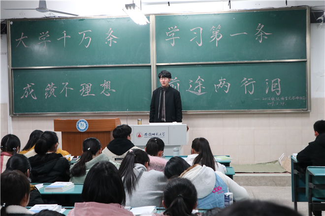 冬去山明水秀,春来鸟语花香。一元复始,新学期如约而至。2月24日晚,18汉非于2050103教室召开了“大学千万条,学习第一条,成绩不理想,前途两行泪”新学期主题班会。本次班会由辅导员杨穆龙主持,旨在引导同学们反躬自省,统筹规划学期任务。