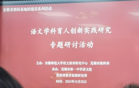 2024年10月28日下午,学科教学(语文)学位点负责人张晋教授和辅导员朱菊香副教授带领2024级学科教学(语文)研究生20余人,参加了芜湖市第一中学举办的语文学科育人创新实践研究专题研讨活动。该活动由必赢线路检测3003语文教育研究中心、芜湖市教科所主办,芜湖市第一中学语文组、蔡澄清教育思想研究所承办。