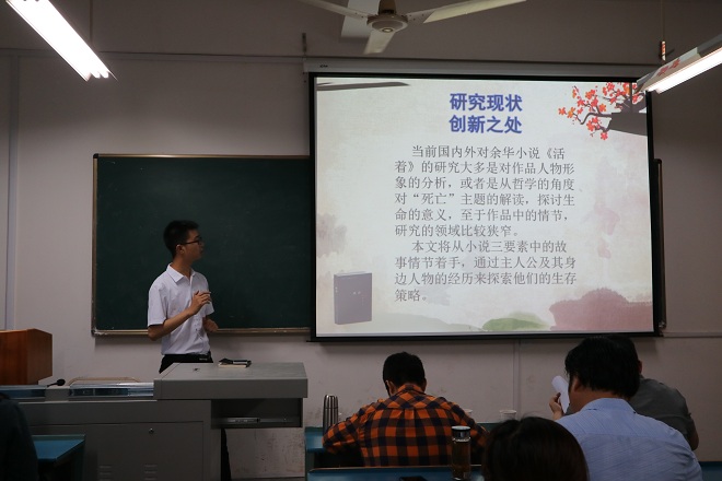 “培养创新意识,激发学术热情。”5月12日晚,由文研会承办的第七届“研究生学术论坛”在花津校区学苑南楼5号楼顺利举行。本届交流会按专业分两个教室同时进行,分别邀请了张勇、李伟、李建栋以及夏家顺、石润宏、刘长悦六位老师担任评委。
