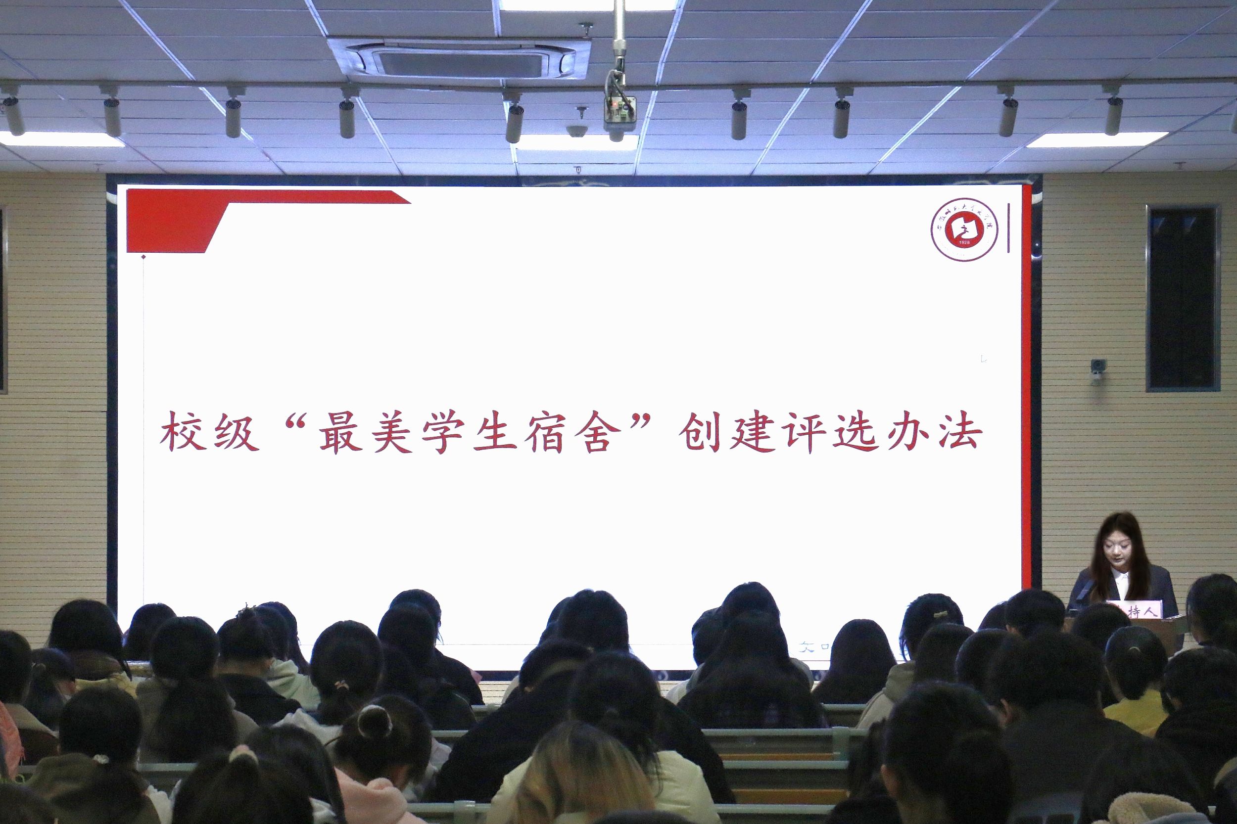 为了落实大学生护航行动计划,扎实推进“一站式”学生社区建设,推动文明宿舍创建,必赢线路检测3003no1于11月21日在文典楼F108报告厅举办文明宿舍表彰暨最美学生宿舍创建大会。必赢线路检测3003no1党委副书记刘飞,辅导员冯文君、吴佳惠、唐宇晴、胡慧、范栩铜、杨玉婷、张雨晴及学院团委学生会成员,各班寝室长代表,获奖寝室代表参加此次大会。