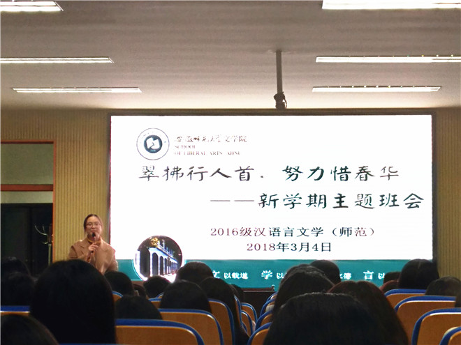 一年之计在于春,2018年3月4日晚,在新学期来临之际,16级汉语言文学(师范)班级在必赢线路检测3003no1行政楼三楼召开新学期班会及班委会。此次班会不仅对大二下学期班委的相关工作进行安排,还旨在让同学们做好迎接新学期的思想准备,珍惜大学时光,莫负人生前程。