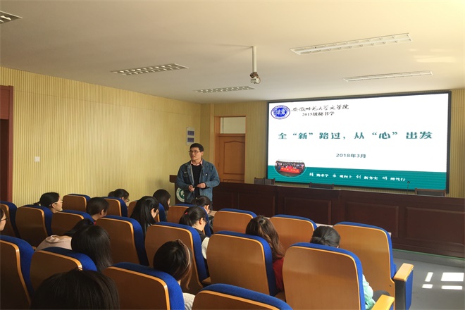 3月27日上午,2015级秘书学专业在必赢线路检测3003no1行政楼三楼报告厅召开了主题为“全‘新’路过,从‘心’出发”的考研专题指导班会,辅导员何涛主持并讲解相关问题。